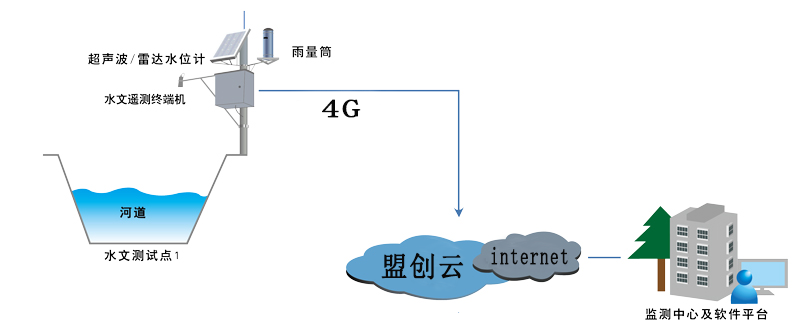 數(shù)據(jù)感知:實時測量現(xiàn)場水位、降雨量、蒸發(fā)量和其他氣象及土壤數(shù)據(jù);數(shù)據(jù)上報:水文遙測終端實時采集水位計、雨量筒輸出信號,并將監(jiān)測數(shù)據(jù)上報;數(shù)據(jù)傳輸:監(jiān)測數(shù)據(jù)通過無線4G、光纖網(wǎng)線傳輸至遠程監(jiān)測平臺;數(shù)據(jù)應(yīng)用:監(jiān)測預(yù)警平臺實時顯示、存儲各監(jiān)測點數(shù)據(jù),并及時分析、發(fā)布預(yù)警信息;