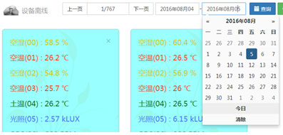 清單明細(xì)式顯示方式,可以直觀地查看各個環(huán)境因素參數(shù)在某個時間點的監(jiān)測數(shù)據(jù)。
