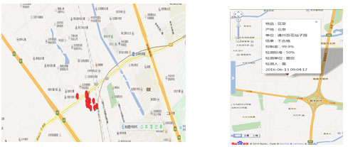 9、GIS地圖生成:利用檢測設(shè)備內(nèi)置的GPS模塊,實現(xiàn)衛(wèi)星定位數(shù)據(jù)捆綁測試數(shù)據(jù)信息,實施GIS地圖定點監(jiān)控每個檢測點的位置信息,監(jiān)測者可在其衛(wèi)星定位圖標(biāo)上點擊位置坐標(biāo)查看該檢測點測試數(shù)據(jù)相關(guān)索引信息。