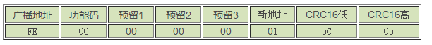 3. 如果忘記傳感器的地址,可以使用廣播地址FE來更改,主機(jī)→從機(jī)
