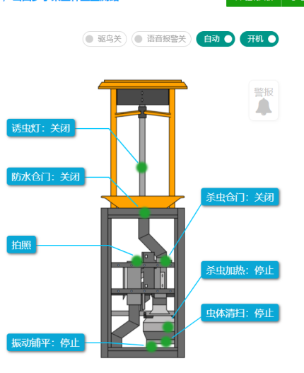 1、《人工AI智能蟲體識(shí)別系統(tǒng)》,具有人性化的數(shù)據(jù)查看視覺界面和操作、控制按鈕,輔助以設(shè)備立體結(jié)構(gòu)圖片形式,展現(xiàn)蟲情測報(bào)燈的工作狀態(tài)和故障判斷。支持手機(jī)、PC端,免費(fèi)使用。